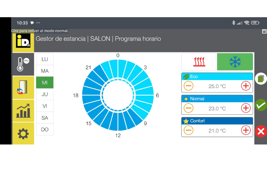 En Energanova dejamos instalada una app para poder regular el termostato por estancias:
