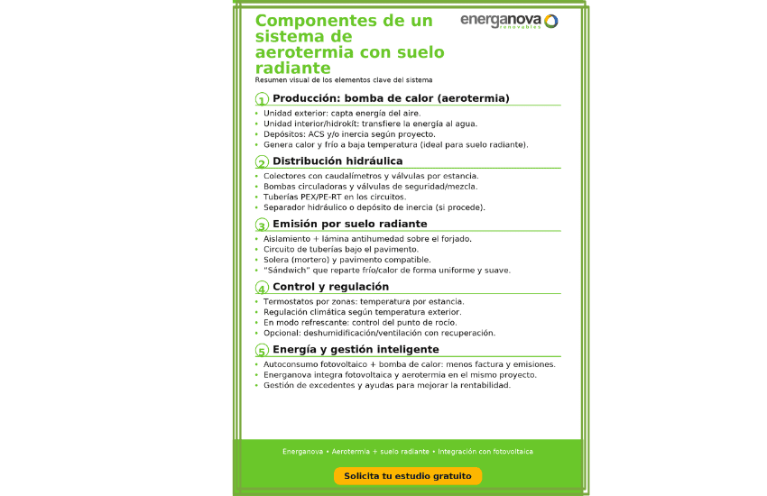 - La diferencia real entre aerotermia y suelo radiante y qué aporta cada uno.